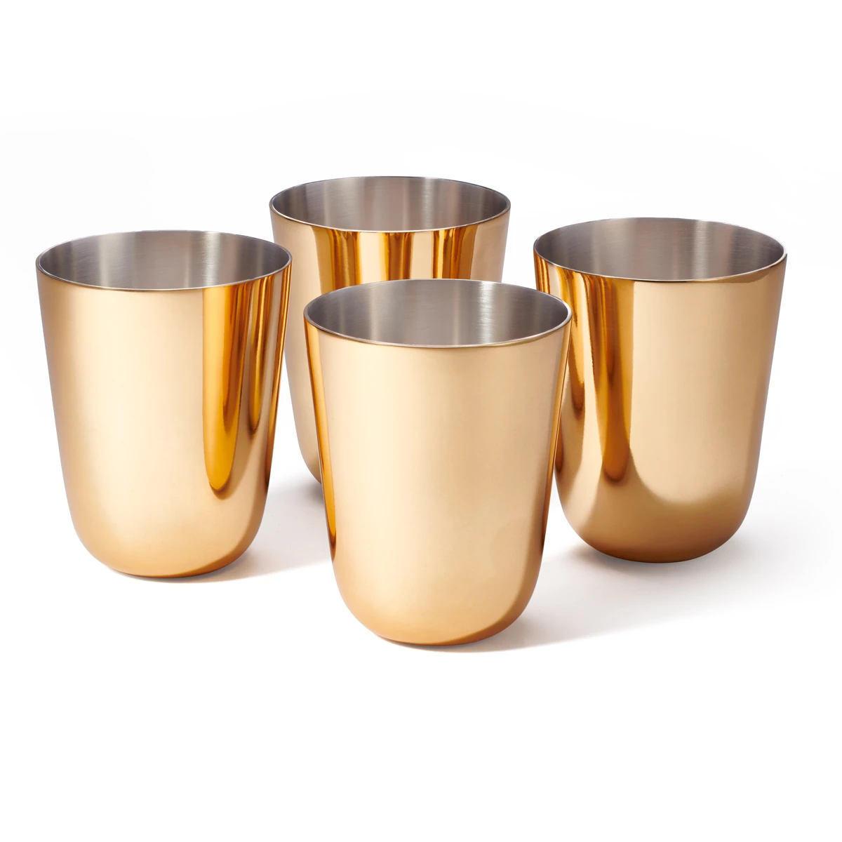 The perfect way to serve a classic Mint Julep, the drink associated with the Kentucky Derby for a century. Crafted from stainless steel and gold plated on the outside, this set of four cups is also an attractive way to present any frosted drink H: 3.6″ CN 209 Metal Aerin Aerin 811858032552 19222010AE 4 of Set Cups Cocktail Julep Fausto Aerin