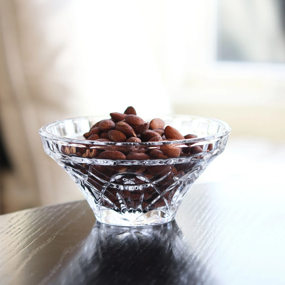 The pattern flows like a folk song on sheet music. The notes are connected through the cuts, resembling the villagers’ lives of farming and fishing. IE W: 6.25″ x H:3″ 225 Plums Cashs Cashs Crystal 078928493549 23586C Bowl Crystal 6″ Ring Celtic Ireland Cashs Wedding BlackFriday Mother