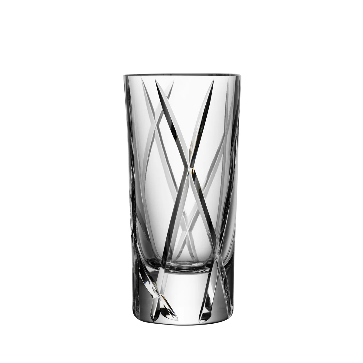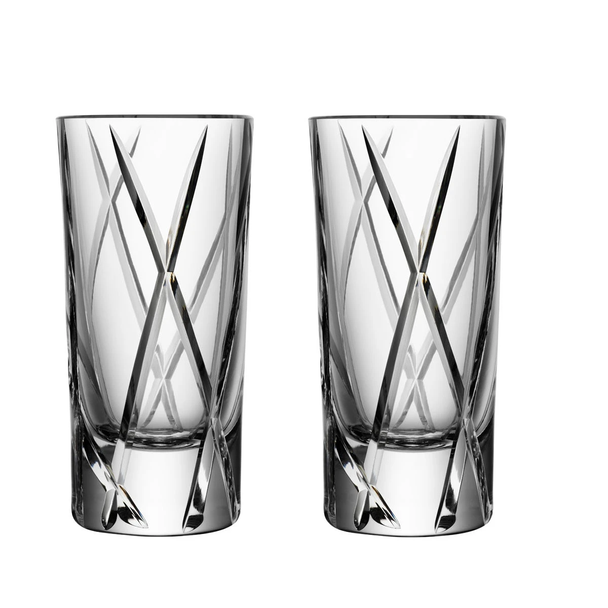 City Shot from Orrefors holds 1.7 oz and is ideal for serving spirits and shots. The cuts that criss-cross the surface of the glass create an asymmetric look, which contributes to the distinct identity of the collection. Designed by Martti Rytkonen. H: 3.35″ W: 1.57″ Cap: 1.69oz. TR 208 Crystal RSI Orrefors Kosta Boda 7321646041909 6310342 Pair Glasses Shot City Orrefors
