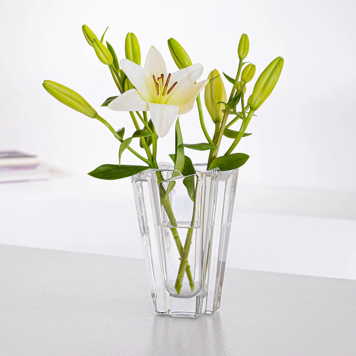 Glacial Vase from Orrefors is made of thick, crystal-clear glass inspired by the edges of an iceberg as it rises to the surface. The object delivers elegance to any home as a decorative piece. TR H: 7.52″ W: 4.76″ 211 Crystal RSI Orrefors Kosta Boda 7321646007813 6320421 Vase Crystal 3/8″ 7 Glacial Crystal Orrefors