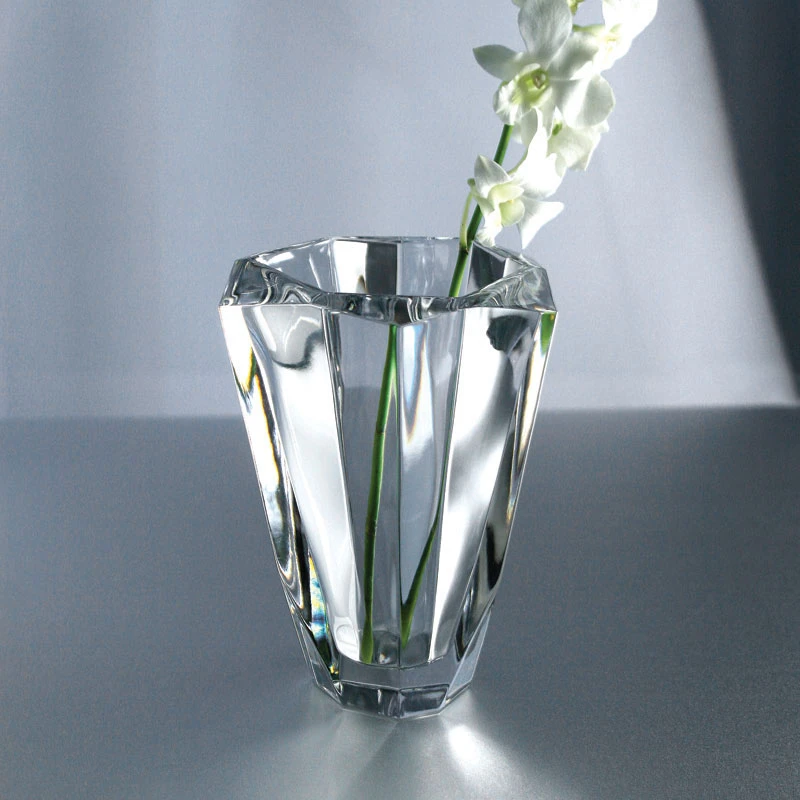 Precious Vase from Orrefors has an asymmetrical design that beautifully refracts the light reflected in the thick crystal. The large vase is a decorative centerpiece delivering an elegant feel to the home. Complement it with a bouquet of choice. Designed by Malin Lindahl. H: 9.25″ W: 6.85″ TR 211 Crystal RSI Orrefors Kosta Boda 7319675692230 6569223 Vase Crystal 1/4″ 9 Precious Crystal Orrefors