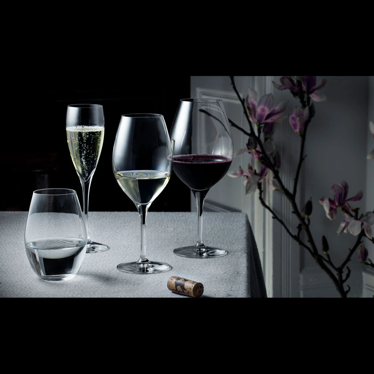 More Champagne from Orrefors, which holds 5 oz, is an elegant, festive glass for sparkling wines of all kinds. This glass accentuates the aromas and flavors of the drink, its crispness, and its fruitiness. The bubble point at the bottom of the glass helps the carbon dioxide in the drink rise to the surface, and the long, narrow shape preserves the bubbles. Designed by Erika Lagerbielke. H: 8.46″ W: 2.56″ Cap: 5oz. TR 215 Crystal RSI Orrefors Kosta Boda 7321646000302 6310101 Four of Set Flutes Champagne More Orrefors